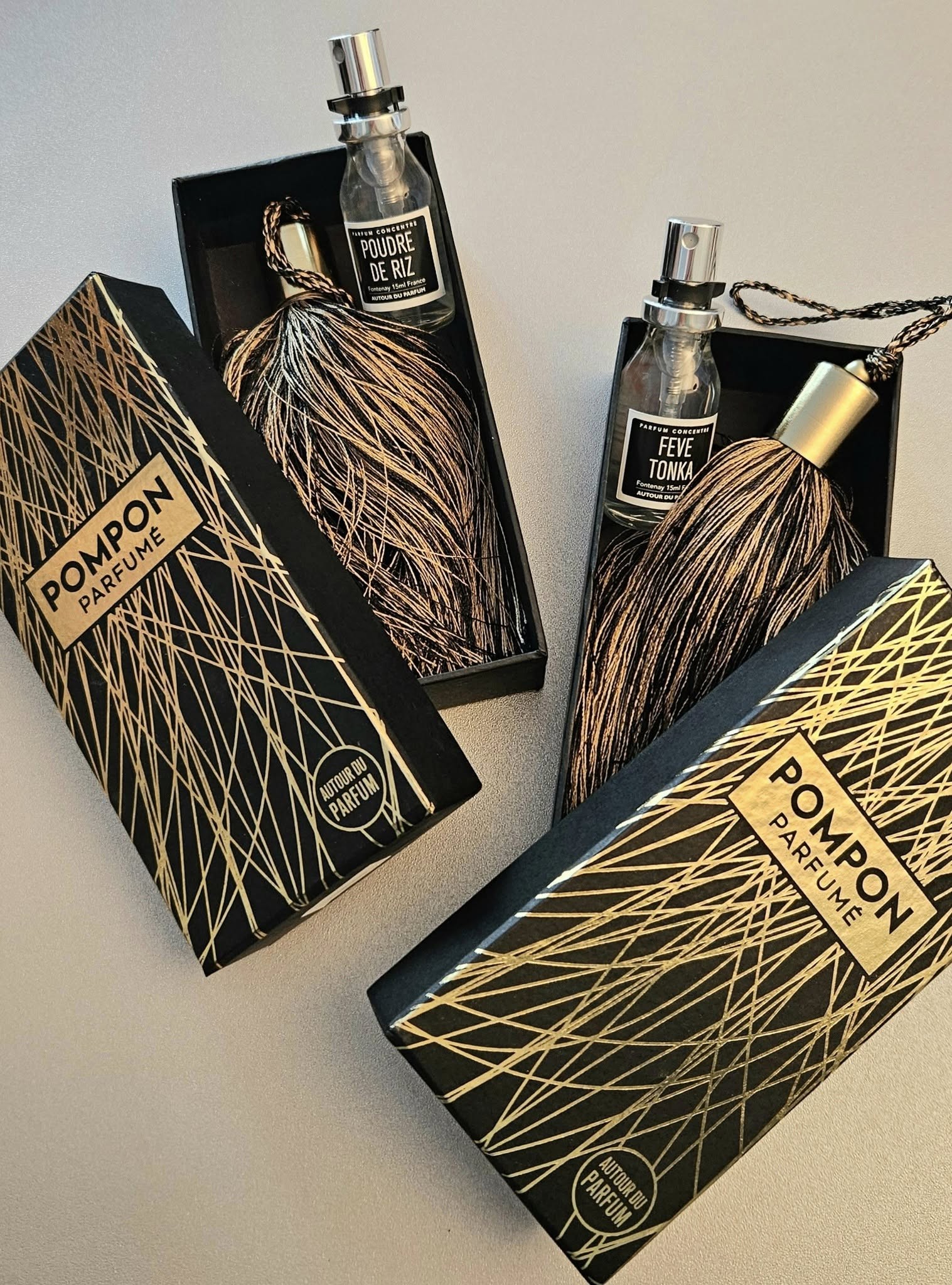 Le coffret comprend le pompon et un concentré de parfum en spray 15 ml